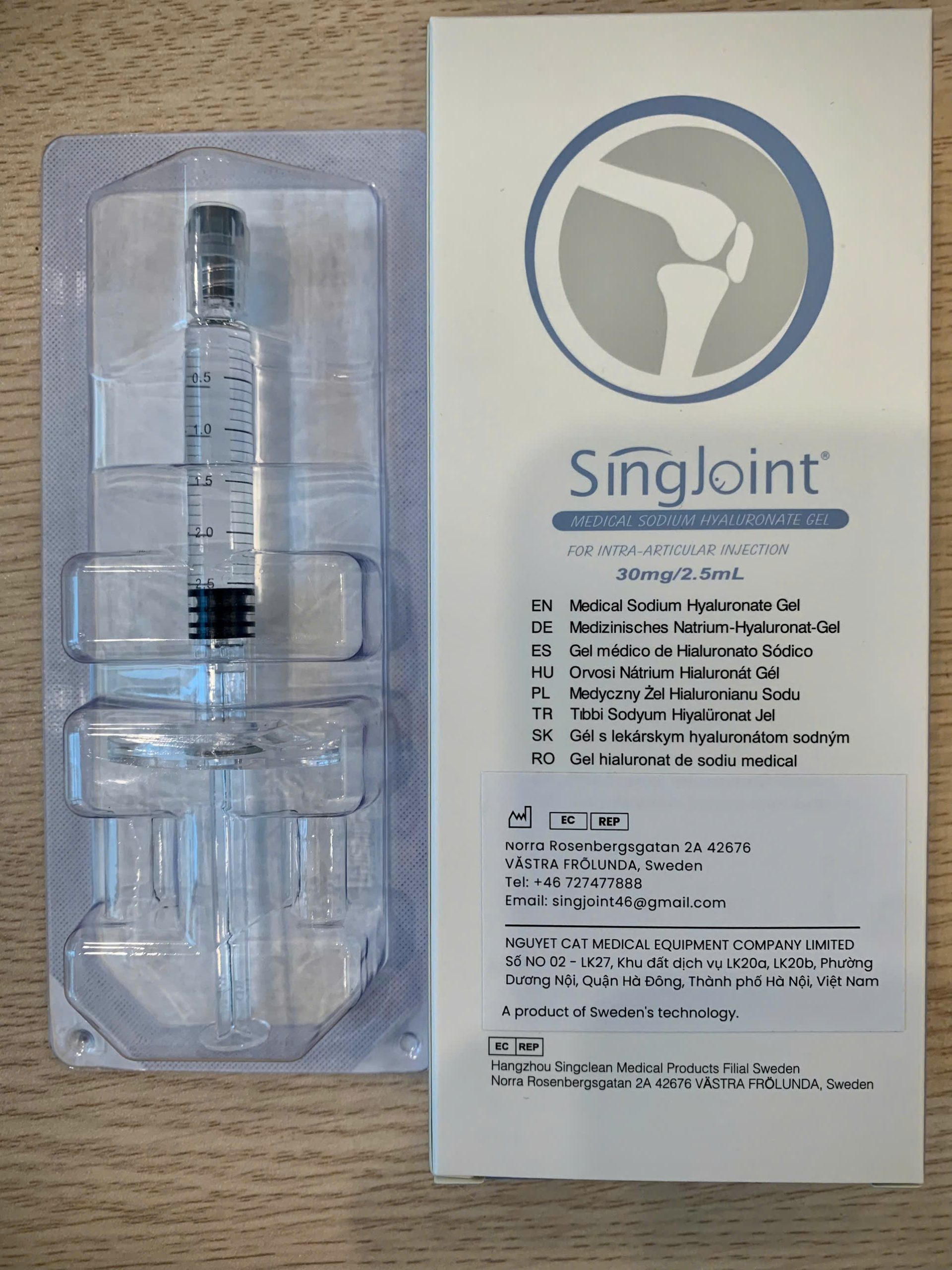 Để điều trị viêm xương khớp, khô khớp và viêm khớp dạng thấp, natri hyaluronate trong thuốc xương khớp là rất quan trọng. Giờ đây, Singjoint là sự lựa chọn lý tưởng cho việc bổ sung chất nhờn khớp gối . Đây là loại thuốc tiêm khớp an toàn và hiệu quả trong điều trị cơ xương khớp được sản xuất theo công nghệ Thụy Điển phân phối chính hãng bởi công ty Nguyệt Cát tại Việt Nam.